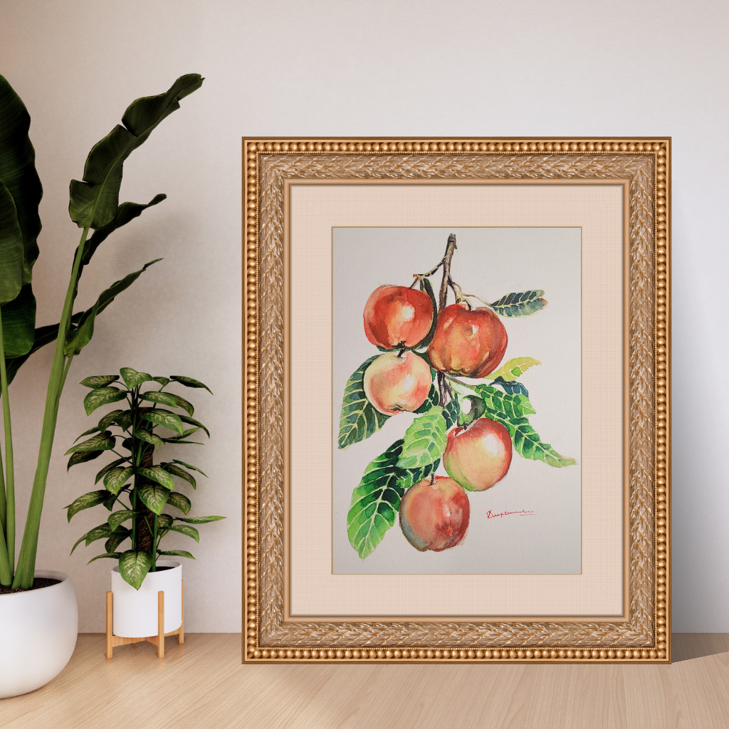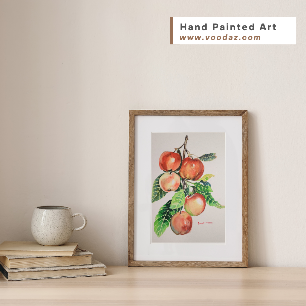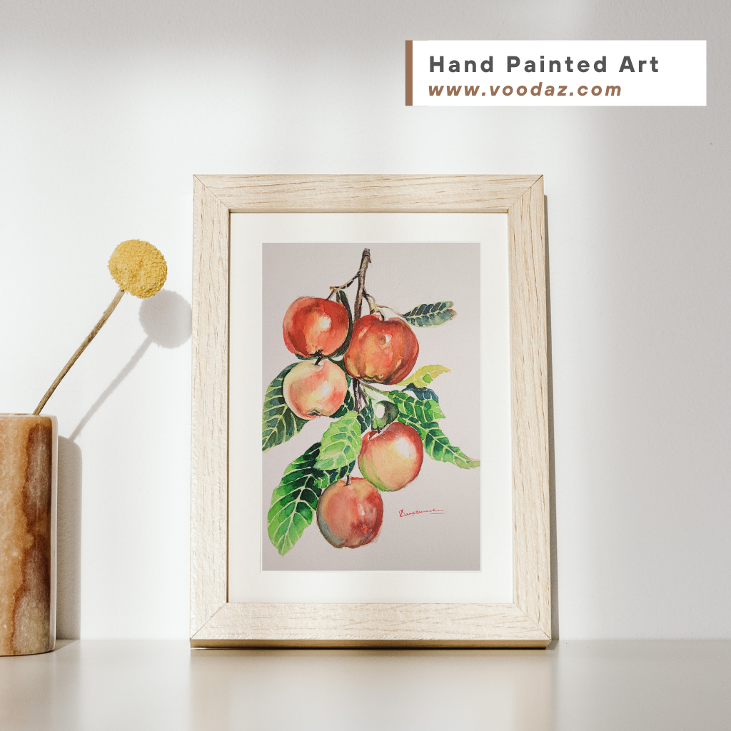 Bring nature’s charm into your space with this exquisite hand-painted watercolor artwork featuring vibrant apples on a lush green branch. Each stroke captures the delicate play of light and texture, making it a timeless piece of art for your home, office, or as a thoughtful gift.